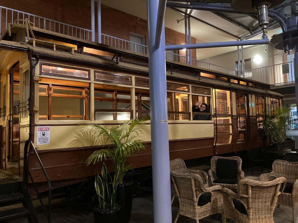 This building may have had the tram craned in before the room went on, or placed there before building (but flooring already there?), or taken in piece by tiny piece. Either way it happened, it’s a magical place to put a tram and the wine bar the the Tradies Club in Dixon is one of my ultimate spots to go. Perhaps it’s not the tram at all, but merely the cheese platters that sucker me in. 🤷♀️