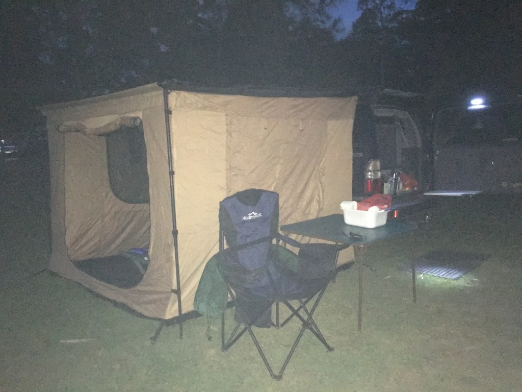 It was mid summer on the NSW coast and the heat at night was real. Not one person in that caravan park helped me but I got it up with a few swear words and a lot of sweat. I also found a huntsman spider the next day but I got him, and it is far easier to pack down on ones own instead of erecting in the first place. 🤷♀️