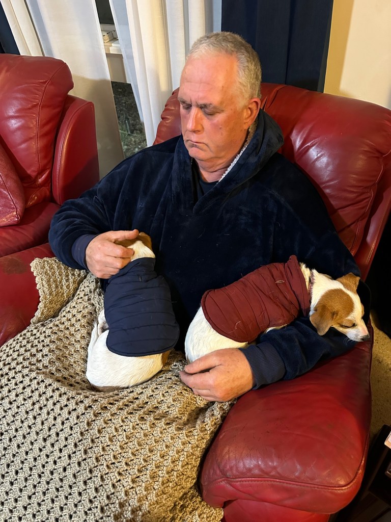The 2021 knit was a vest for my husband but as he went through stomach cancer and associated treatment, he lost a lot of weight and the vest would have been far too large for him. I repurposed the wool into his blanket and I’m glad I did because it was wonderful and could just be thrown into a washing machine if it got dirty as it was made of acrylic.