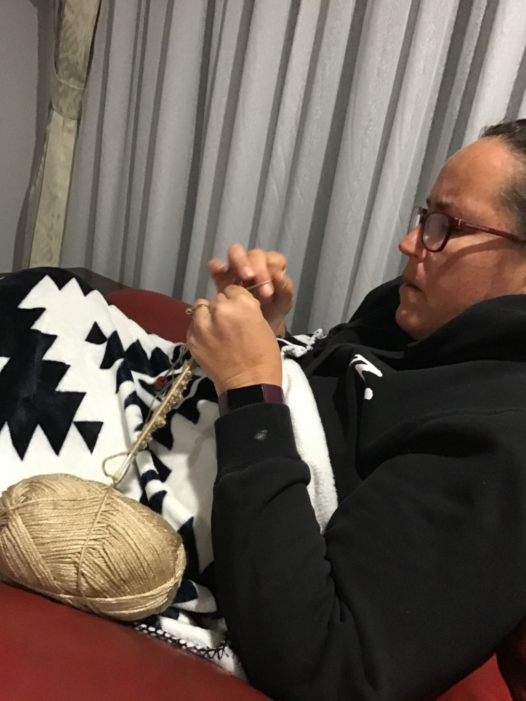 Knitting is something I have been doing on and off since I was 17. My Nan taught me how to knit when I was pregnant with my first son and I taught myself fancy stitches on top of the basic knit and purl stitches she taught me. I have made some beautiful pieces in my time but occasionally I stop due to life circumstances. I didn’t knit after my Dad kicked out my second husband in 2007 but I took it back up when Steve and I moved to Canberra in 2021.