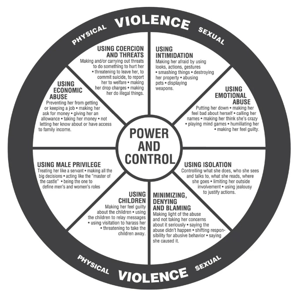 There are no photos of me today. I suppose this is triggering enough but I also do not have photos from back in my days as a victim. I spent 10 years with my husband before he passed away and he was a beautiful husband, helping me heal from my own trauma. It scares me to think about new relationships knowing the statistics and the power and control cycle. I can put the power and control wheel in however to educate people about inappropriate behaviour of a partner.